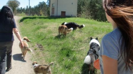 Die kleine Foxy (vorn) mußte in die Junghundgruppe wechseln, weil sie zu wild war.