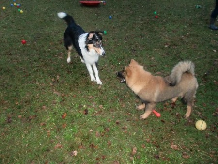 Heute ist der 15.10.10 und heute war es richtig schön bei der Welpenspielstunde. In Amys Gruppe war heute ihre Freundin Julie und deren Bruder Racker und Simba. Man hat Amy richtig angemerkt, dass sie sich darüber freute mit Julie spielen zu können. Ich habe immer das Gefühl, dass Amy sich sicherer fühlt, wenn Julie da ist. Die beiden kennen sich ja auch seit der 1. Welpenstunde und Amy orientierte sich von Anfang an an Julie.