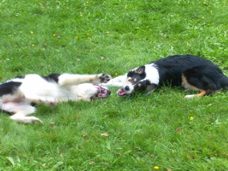 Amy beim Spiel mit einem ihrer Brüder, das müßte Amigo sein.