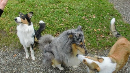 Hier sieht man Amy hinten, Merlin, Amys Bruder vorn und Leica? Leica ist eine Hündin von der Fam. Vogel ( den Züchtern ), aber sie haben noch eine Hündin Cindy und die 2 sehen sich so ähnlich, das ich sie oft verwechsle.