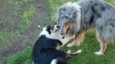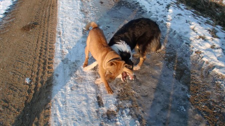 Dieses und die nächsten beiden Bilder sind vom 30.01.11. Amy und Bailey freuen sich, sich zu sehen und spielen auch gleich miteinander.