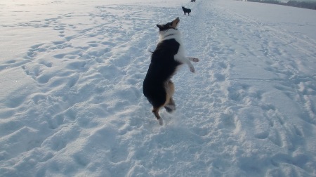Zum Schluß der Showdown mit vollem Körpereinsatz. Billie kommt angeflogen :-)). Man beachte, dass auch die Hinterpfoten in der Luft sind.