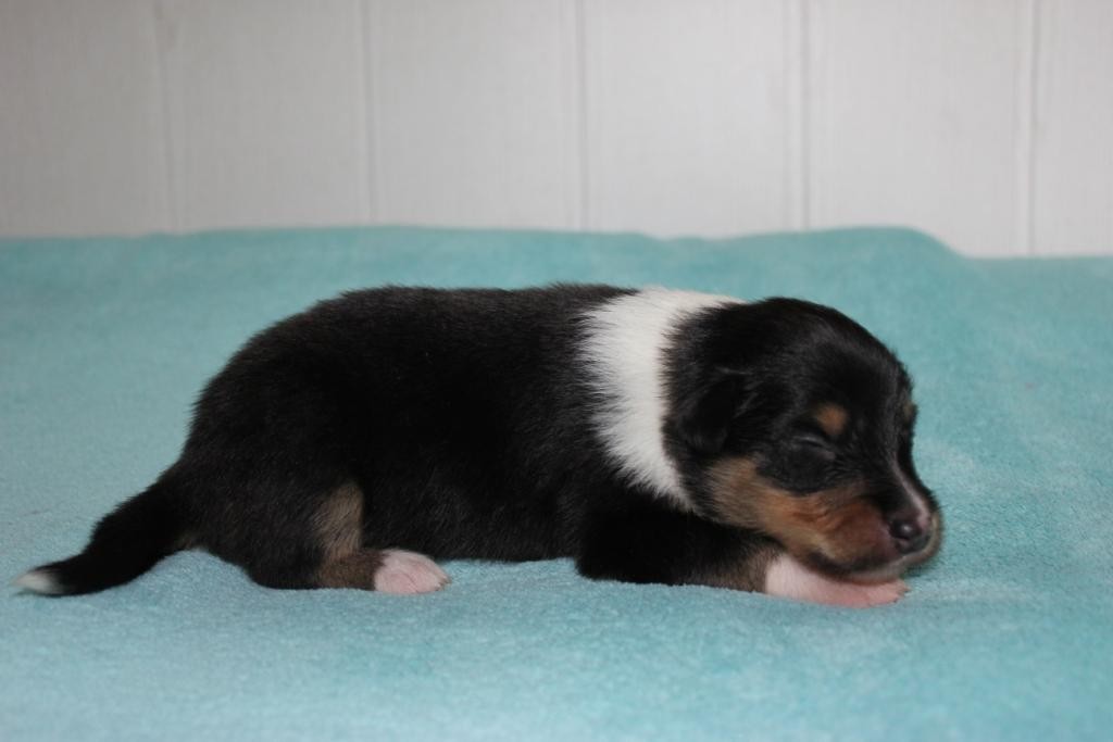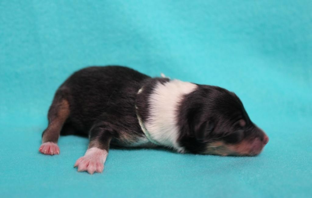 Ace kam um 5.52 Uhr zur Welt und war nach seiner Geburt etwas ruhiger, trotzdem mobil. Er war der Welpe mit dem geringsten Geburtsgewicht.