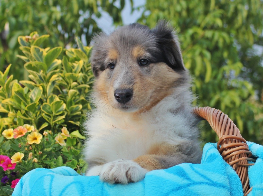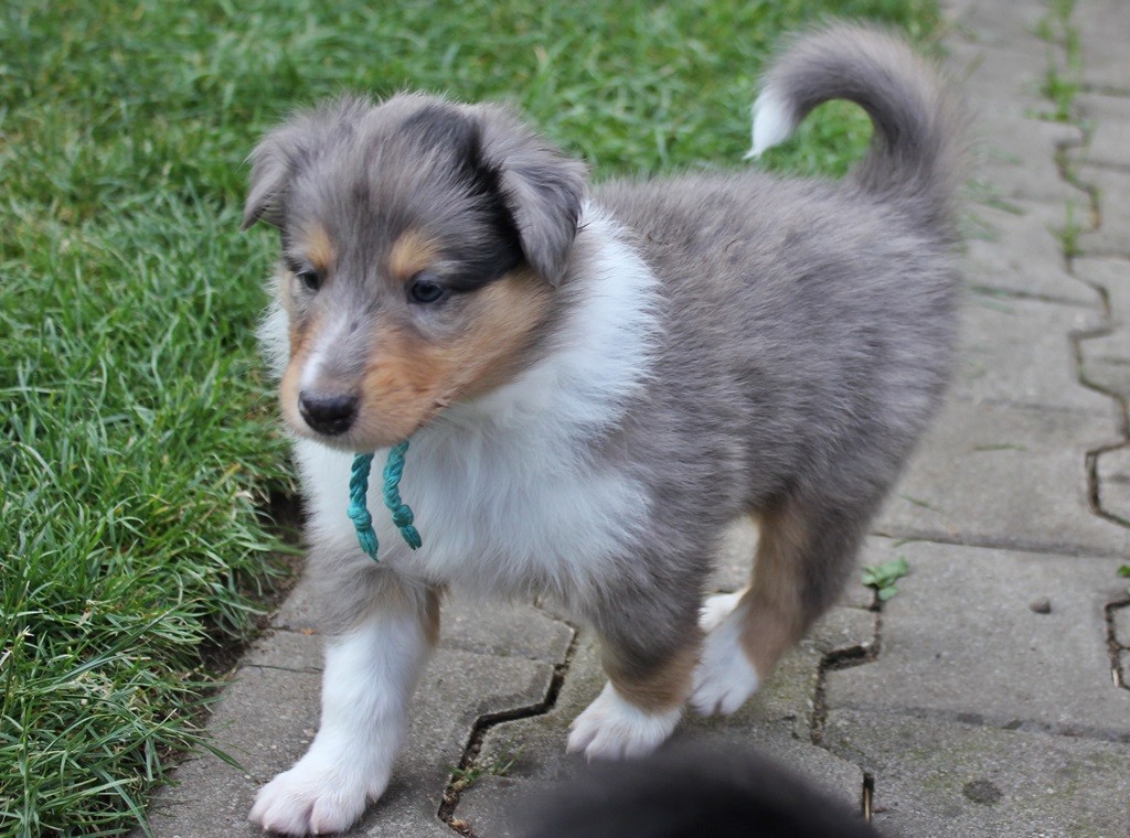 Er wurde um 14.23 Uhr mit einem Gewicht von 229g geboren. Er ist der Leichteste im Wurf gewesen. Er hat ein schönes blue-merle mit wenig schwarzen Flecken.