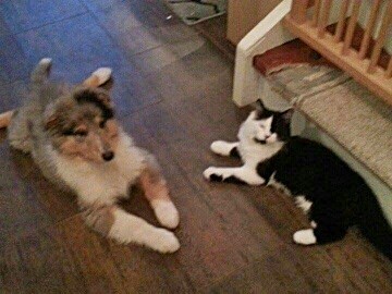 Cino lebt nun in Taufkirchen und hat gleich eine Collie-Omi und eine Collie-Spielgefährtin fast im selben Alter namens Luna in der Familie.