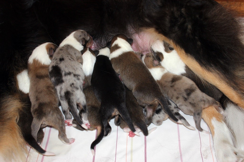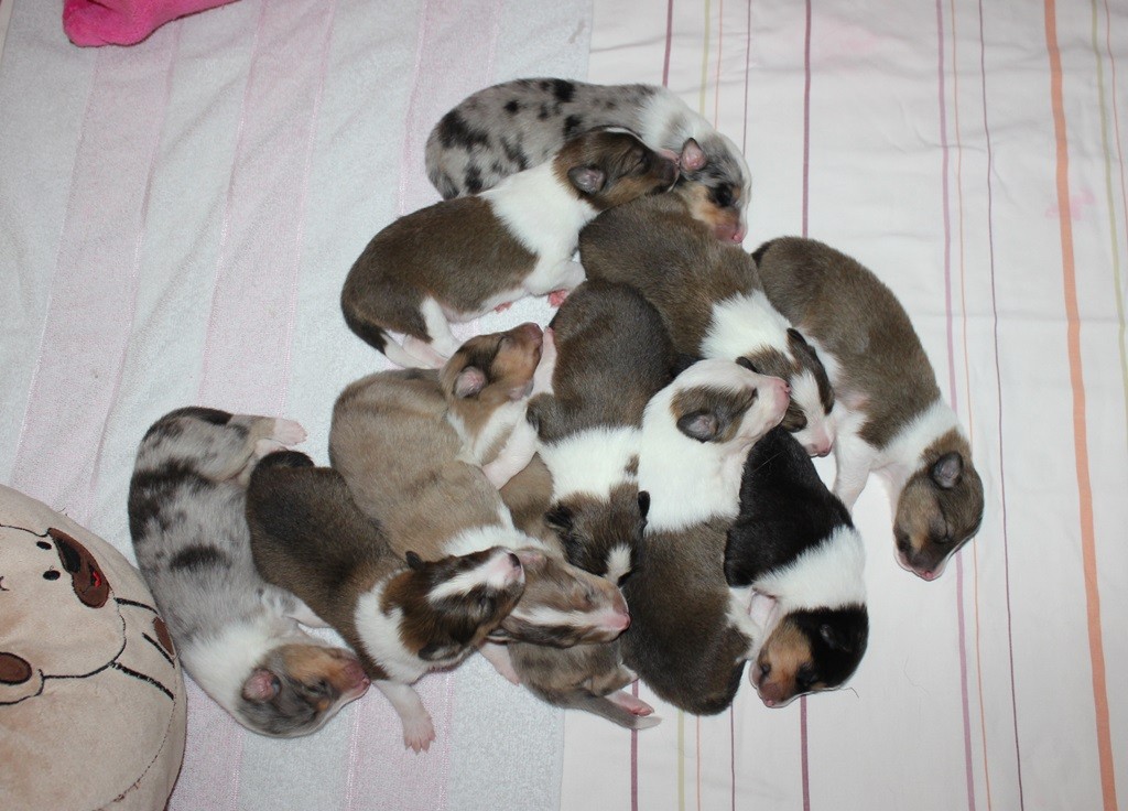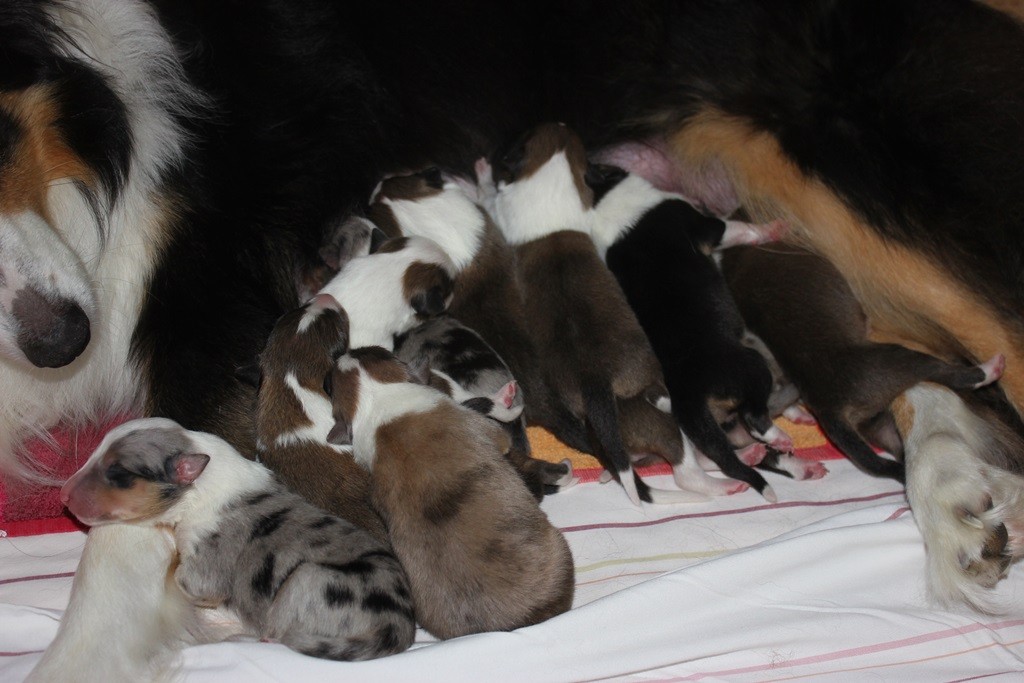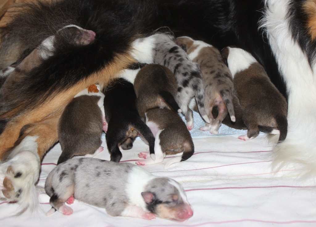 Am 03.07.16 kamen zwischen 9.13 Uhr und 17.41 Uhr 11 Welpen von Amy von der Vogelranch und Dancing Dust vom Flörsbachtal auf die Welt!