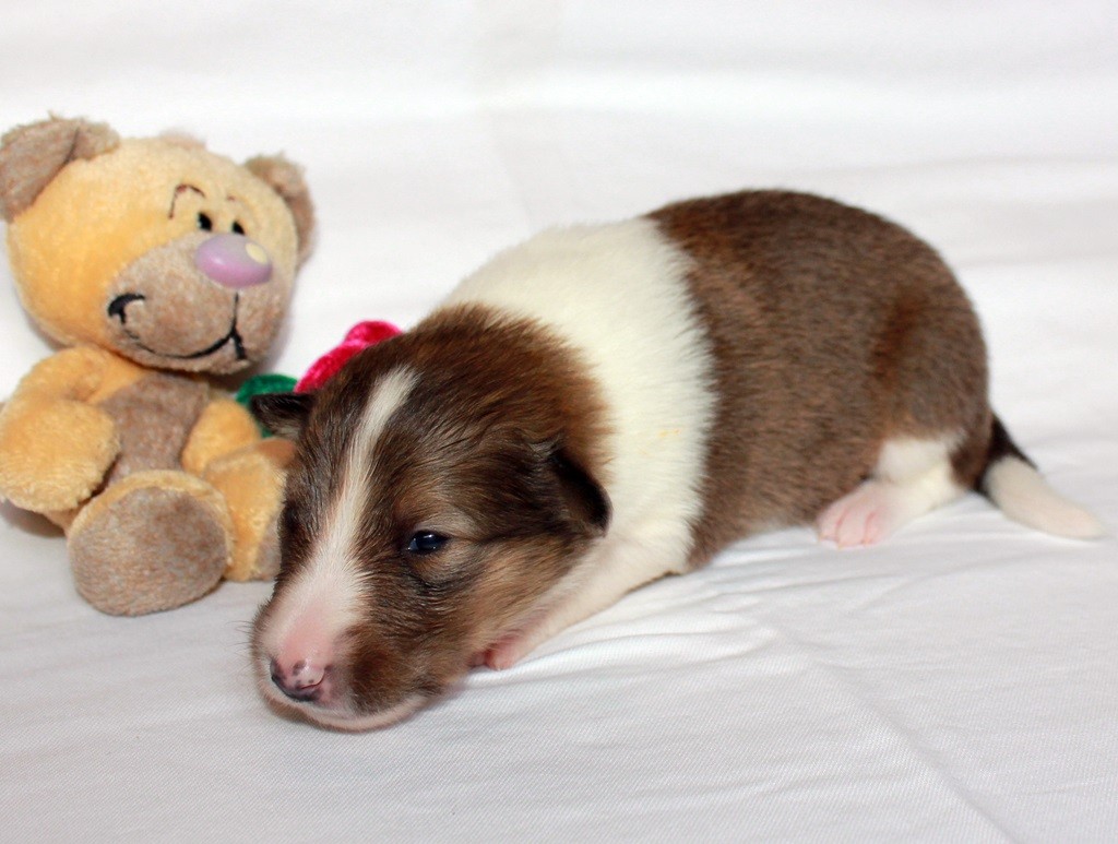 Sie wurde um 12.15 Uhr mit einem Gewicht von 282g geboren und kam somit ebenfalls recht schnell nach ihrer vorherigen Schwester. Auch sie hatte etwas Probleme beim atmen, aber nach dem absaugen erholte sie sich in kürzester Zeit und suchte sich einen Platz an der Milchbar. Ihre Farbe ist darksable und sie ist weißfaktoriert!