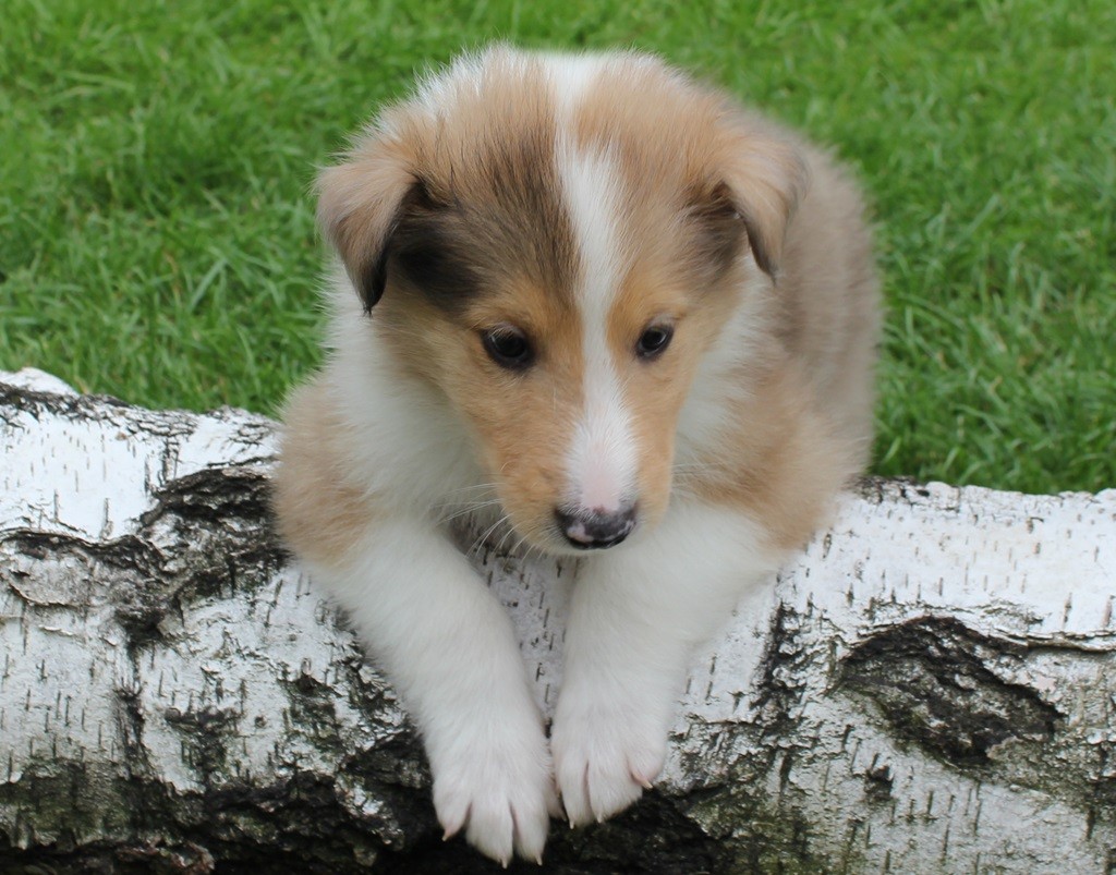 Er wurde um 14.11 Uhr mit einem Gewicht von 317g geboren. Seine Farbe ist darksable-merle und er ist der einzige Junge in diesem Wurf mit dieser Farbe! Er war gleich fit und aktiv und saugte sich an der Milchbar fest!