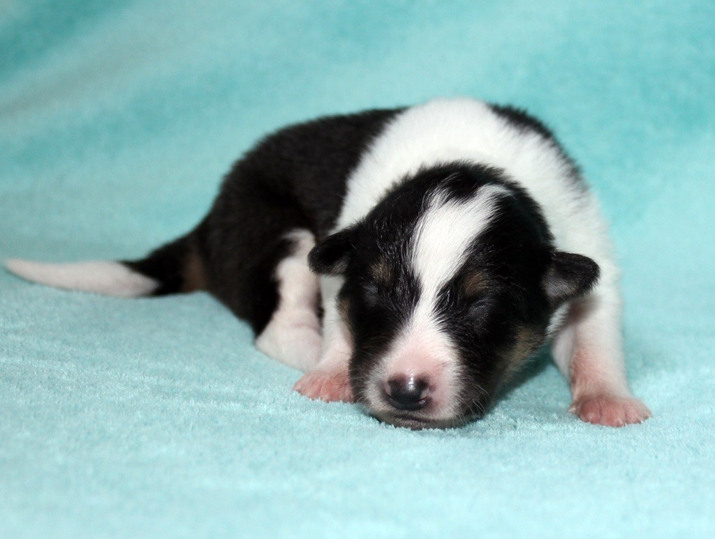 Fae wurde nach einer langen Pause um 4.27 Uhr am 02.06.17 geboren. Ihre Farbe ist tricolor und sie ist weißfaktoriert. Ihre Zeichnung ist toll!